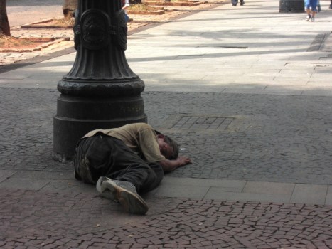 The centre is filled with men, women and children sleeping in the street. This guy was one of dozens in the square outside the Cathedral.