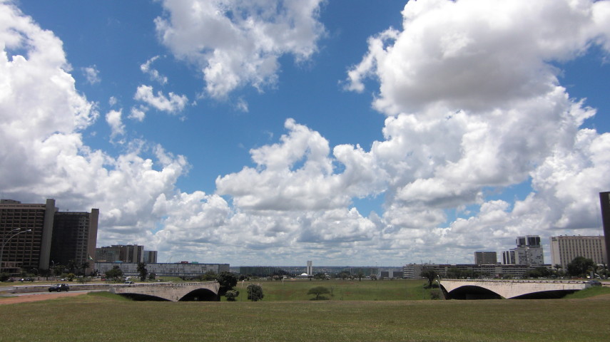 The monumental axis of the centre of Brasilia, designed by Lucio Costa. Looking down towards the parliament, taken from just below the TV tower.