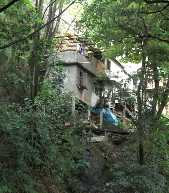 These houses, unconnected to any previous favela, have been built in a particularly risky place right up against a retaining wall on a very steep slope with very little space.