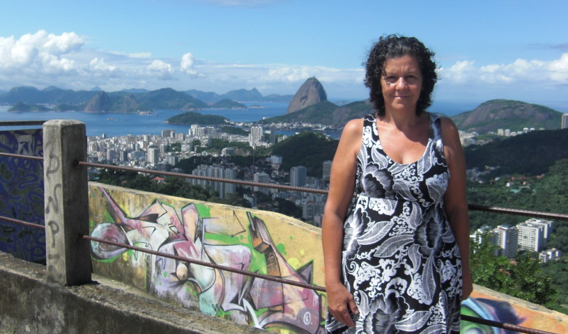 The impressive Elisa, Leader of the Community Association, and the equally impressive view south-east from the top of Morro dos Prazeres. This is as much the city of the favelados as the playboys and girls of Ipanema, Leblon and Copacabana… or it should be.