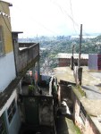 One of our most interesting visits last week was to the favela of Morro dos Prazeres, north-west of Santa Teresa. Prazeres has one of the most astonishing views of Rio of any neighbourhood, with an almost 360 degree panorama of the city, it’s perspective to the south only interupted by the statue of Christ the Redeemer, which is hardly a bad view in itself! You might think that the last thing that favelados would care about was the view but they are well aware of the beauty of their location – the assumption that the poor an desperate would not care about such things is a rather patronising misconception. Elisa, the leader of the community association, at least, seems most proud of this asset and says that like many people she wouldn’t want to live anywhere else even if she won the lottery!